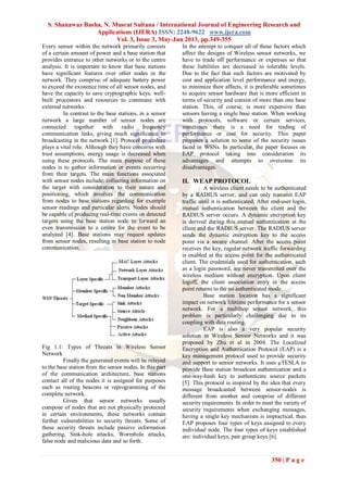This document discusses the vulnerabilities of wireless sensor networks (WSNs) to security threats and proposes the Wireless Extensible Authentication Protocol (WEAP) as a solution. WEAP enhances security through username/password-based authentication and various key management mechanisms, but it is limited by its reliance on a single base station, which may become a target for attacks. The paper suggests improvements to the WEAP protocol by considering multiple base stations to enhance network robustness and security against compromised nodes and base stations.