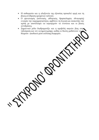 • Σημαντικό ρόλο διαδραματίζει και η προβολή σκηνών βίας στην