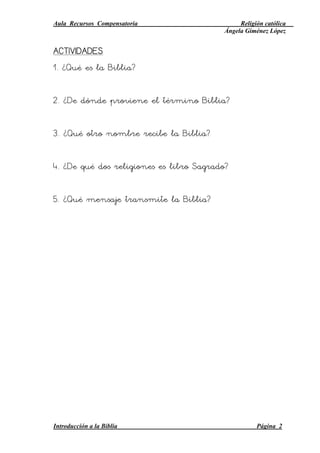 Temas sobre la biblia para el aula, catequesis .. con actividades.