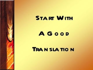 This document discusses different methods of biblical interpretation and translation. It covers literal versus dynamic translations, as well as the importance of understanding historical context. The interpretation process involves close observation of the text, including facts like events and characters, followed by determining the historical-cultural background to understand the original meaning.