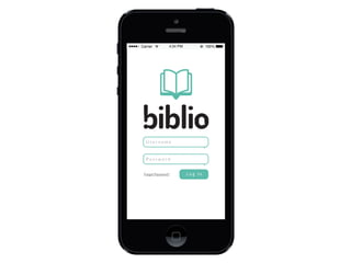 This document contains information about logging into an account, locating nearby libraries and bookstores, exchanging messages about books, and viewing a user profile that includes a current book being read, experience points, badges earned, and friend connections.