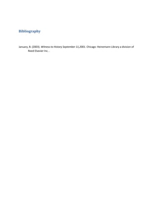This document is a bibliography listing a single source: the book "Witness to History September 11,2001" by B. January published in 2003 by Heinemann Library, a division of Reed Elsevier Inc. in Chicago.