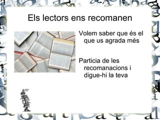 Els lectors ensrecomanen Volem saber que és el que us agrada més