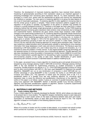 This paper presents a parallel fuzzy c-means clustering algorithm for biclustering gene expression data, utilizing message passing interface (MPI) through MATLAB. The proposed method improves efficiency by clustering both genes and samples simultaneously and filters out less informative gene clusters based on entropy measures. The algorithm is tested on datasets including yeast cell cycle data and breast cancer subtypes, demonstrating its effectiveness in identifying highly correlated biclusters.