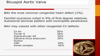 The document discusses the challenges of repairing bicuspid aortic valves (BAV) in cardiothoracic surgery, questioning whether all cases could be treated as effectively as mitral valve repairs. It highlights the genetic aspects of BAV, noting its autosomal dominant inheritance and prevalence in familial cases. The causal genes remain largely unidentified, with Notch1 mentioned as a potential factor.