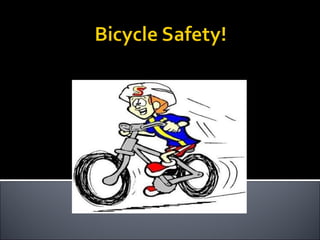 Over 300,000 children go to the emergency room each year due to bicycle injuries. It is important to do a safety check of your bike each time before riding, including ensuring your helmet meets safety standards. Riders should wear bright clothing, stay aware of traffic, and make eye contact with motorists in order to be visible. Proper tips for bicycle safety include wearing a properly fitted helmet, obeying traffic laws, using hand signals, staying alert of obstacles, and preventing bicycle theft.