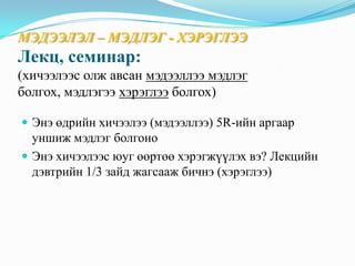 Энэ хичээлээс юуг өөртөө хэрэгжүүлэх вэ? Лекцийн