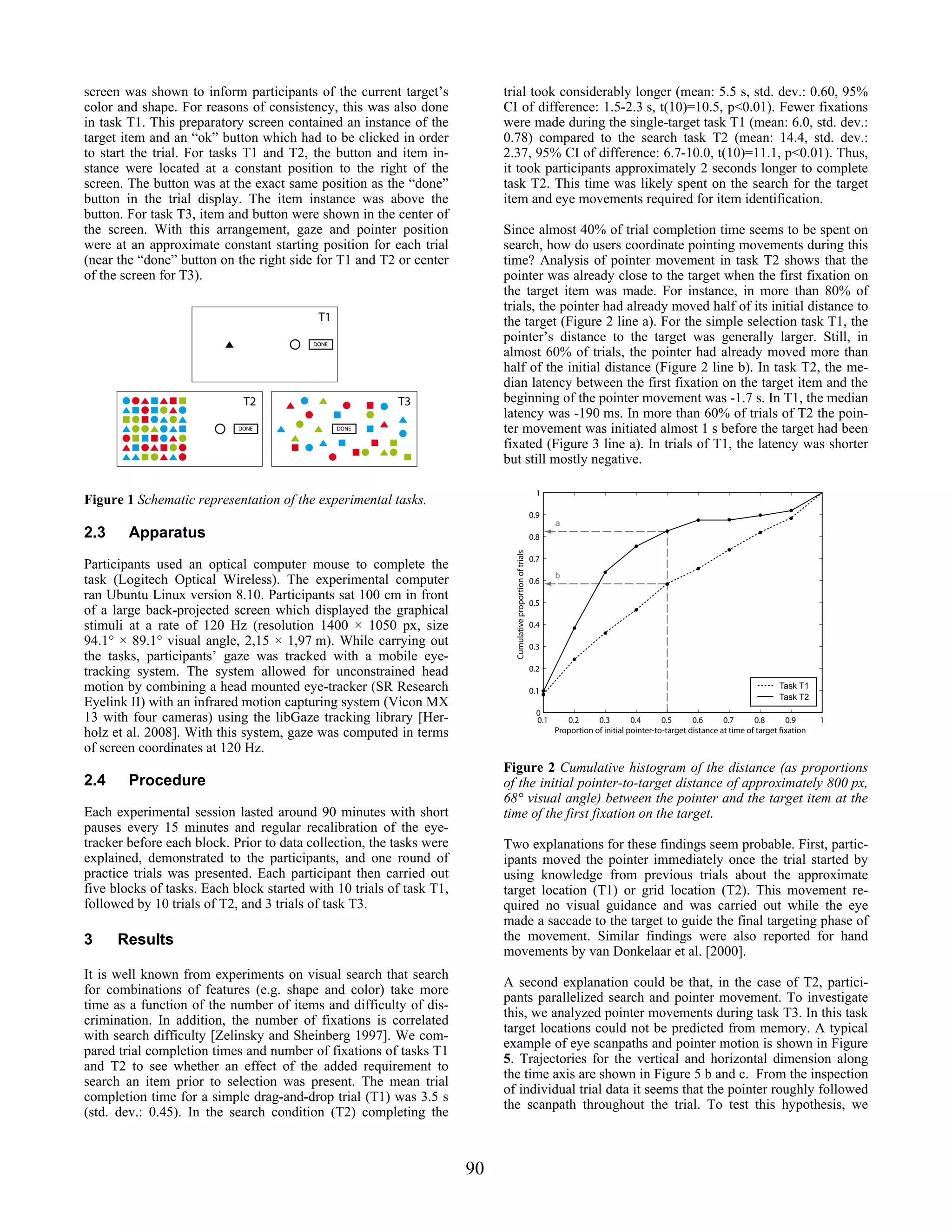This document investigates the coordination of eye and mouse pointer movements during search and selection tasks in human-computer interaction, revealing that users employ strategies such as initiating pointer movements based on prior knowledge of target locations. The study found that when searching for targets, participants tended to parallelize their eye movements and pointer actions, minimizing the distance to likely targets, while also demonstrating a tendency to fixate on targets after pointer movement. These findings challenge existing assistive pointing techniques assumptions, suggesting that alternative strategies may enhance user efficiency.