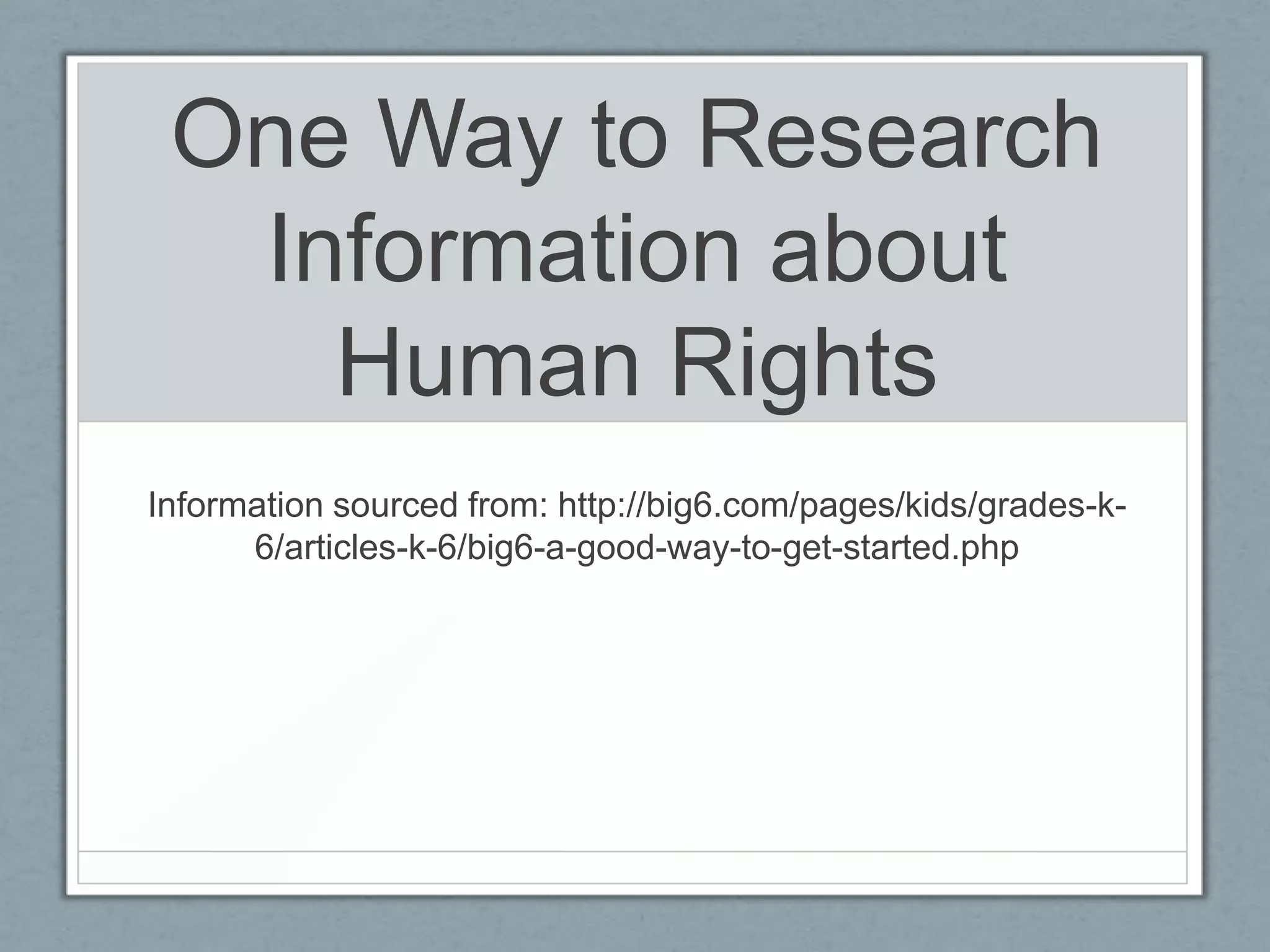 The document outlines a research method for gathering information on human rights by utilizing the Big6 framework. It emphasizes the importance of identifying questions, finding reliable sources, and using keywords effectively. Suggested sources include various online platforms and books, alongside the recommendation to consult librarians for additional guidance.