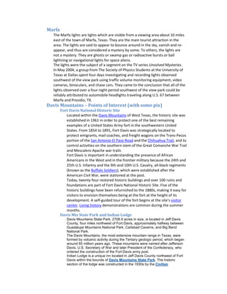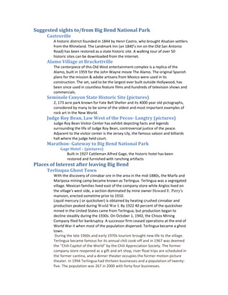 This document provides suggestions for sights near Big Bend National Park, including: