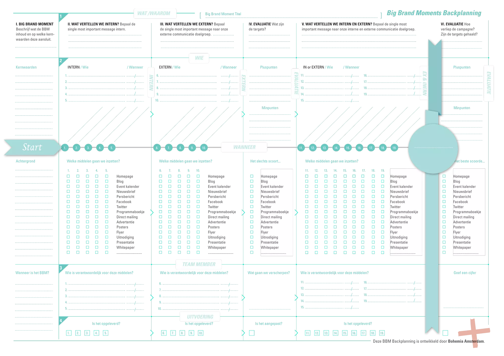 Als je de Big Brand Moments eenmaal benoemd hebt met de BBM jaarplanner, gebruik dan deze BBM Backplanner om het beste uit je BBM te halen.