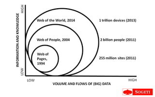 The document discusses how information and technology are transforming our world. It describes how information has become highly addictive due to apps and social media, and how this affects control and engagement. It suggests we are moving from an atomic to a digital world where data is the new oil and everything is connected in real-time. New interfaces like brain-computer interfaces and skin interfaces will become more common as technology extends human capabilities. The conclusion is that people are increasingly people of the screen and that businesses need to innovate and experiment with emerging technologies.