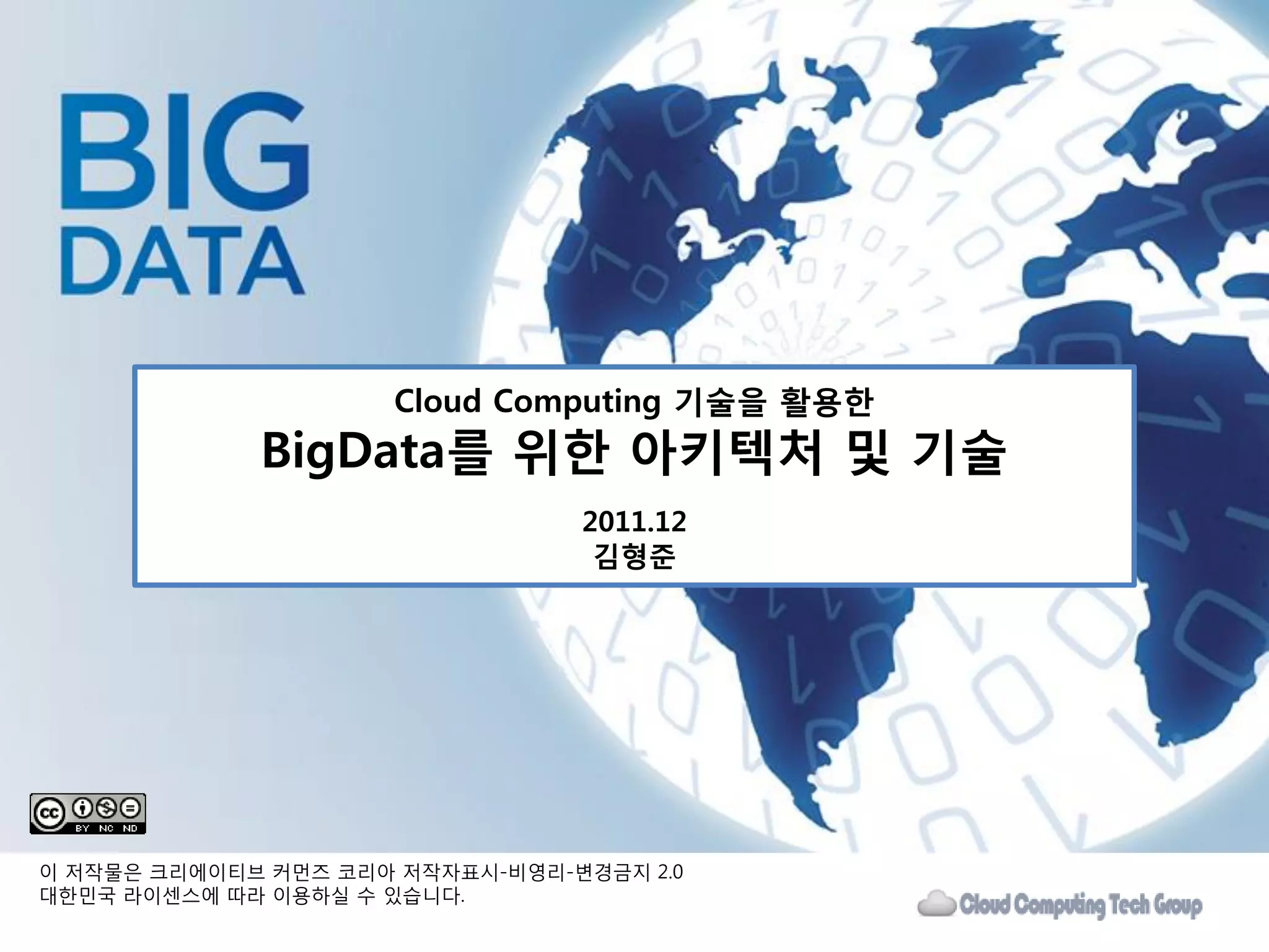 • Big Data(BD)란 기졲의 방식으로 저장/관리/붂석하기 어려울 정도로 큰 규모의 자료를 의미