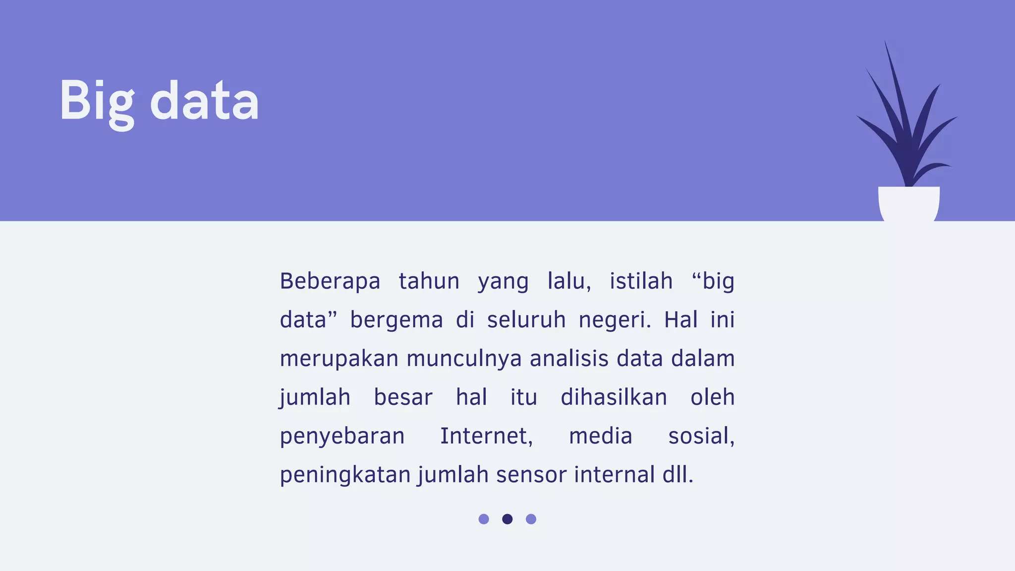 Big data merujuk pada kumpulan data yang begitu besar dan kompleks sehingga perangkat lunak biasa tidak dapat menangani analisisnya secara efektif. Termasuk dalam dimensi big data adalah variasi, volume, kecepatan, dan veracity, yang menyoroti tantangan penyimpanan dan analisis data. Algoritma yang digunakan untuk mengolah big data menjadi kunci meningkatkan keunggulan kompetitif dalam bisnis digital modern.
