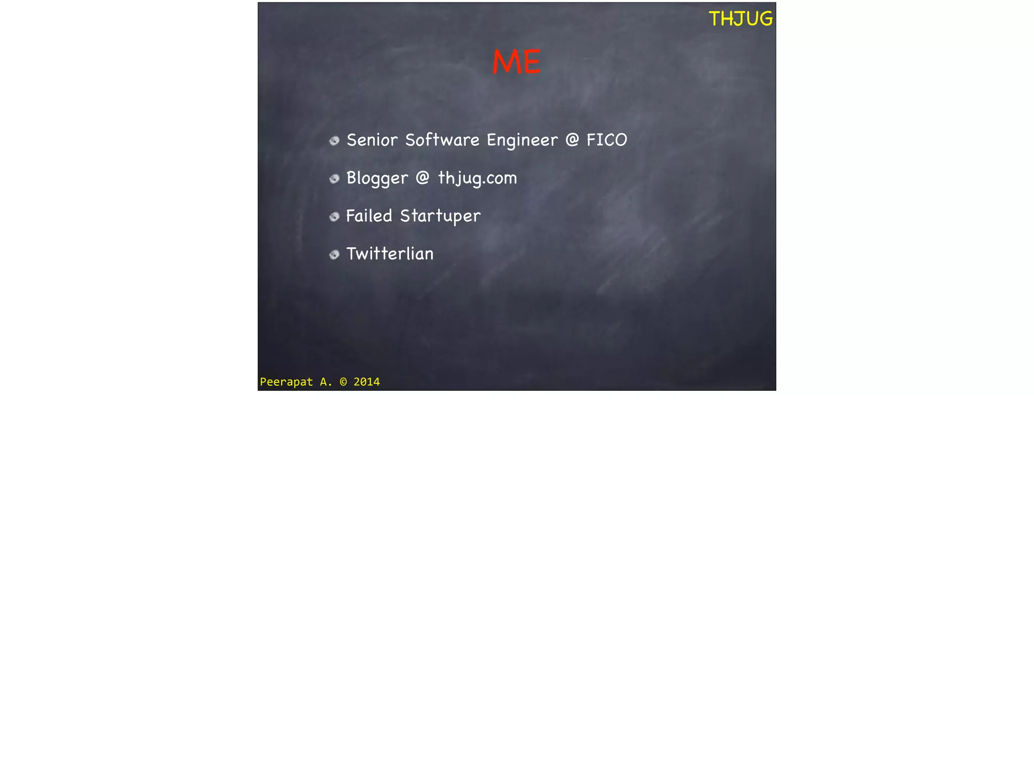 2014 THJUG ME Senior Software Engineer @ FICO Blogger @ thjug.com Failed Startuper Twitterlian