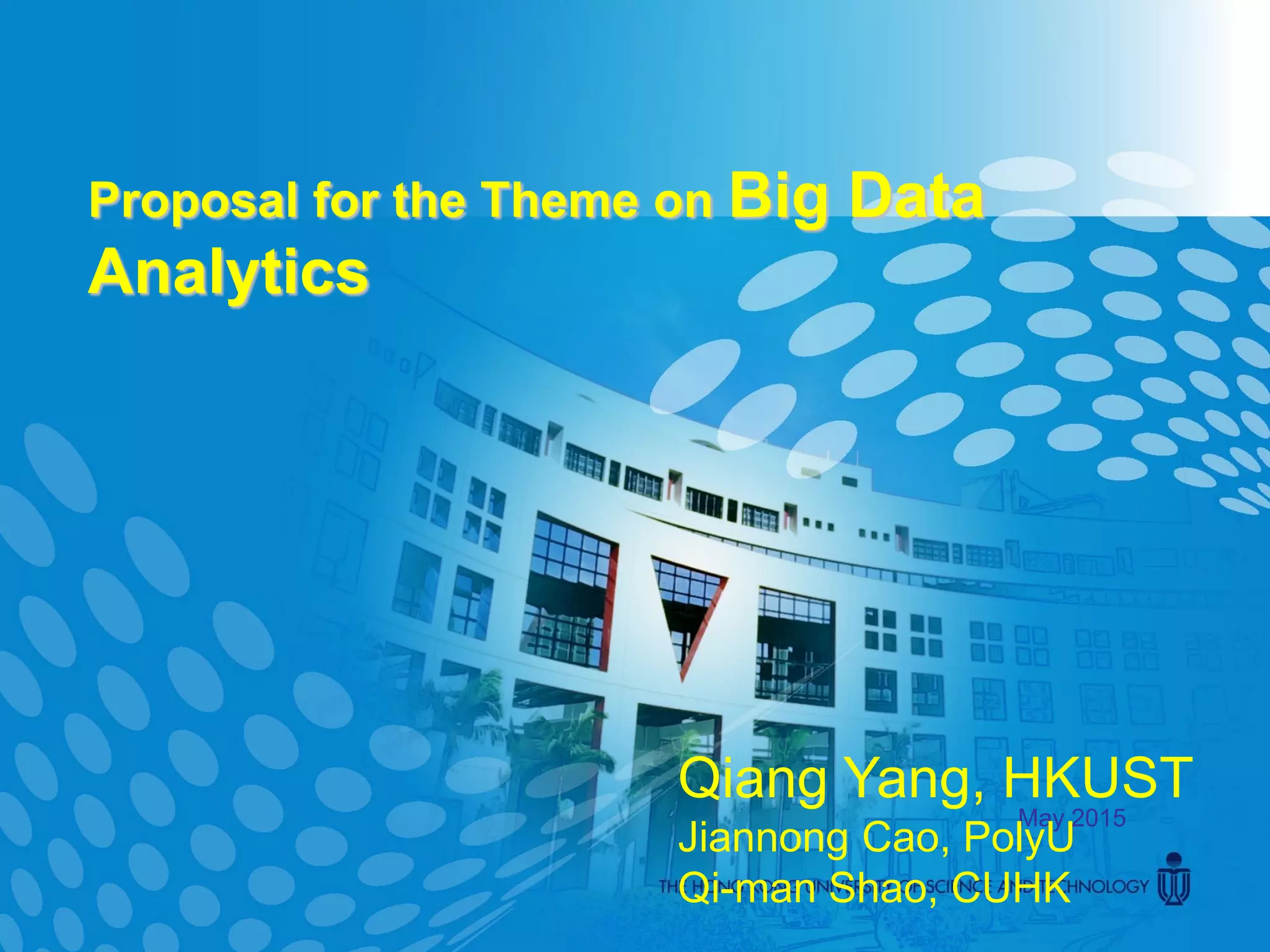 This document proposes a theme on big data analytics research. It notes that the world's data storage capacity doubles every 40 months and discusses how big data can provide value across many areas like health, policymaking, education and more. The proposal recommends that Hong Kong develop a state-of-the-art big data platform to make a difference in areas like smart cities and support aging populations. It outlines objectives like large-scale machine learning from big data and discusses how Hong Kong is well-positioned for this research with experts across universities and potential collaborators in industry. The expected outcomes include new methodologies, applications impacting society and industry, and educational programs to cultivate big data leaders.