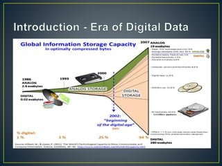 This document provides an overview of big data concepts. It discusses how Gartner's hype cycle model applies to new technologies like big data. It then covers the 3 Vs of big data - volume, velocity and variety. Examples of big data use cases are given, such as using customer log files and social media analytics. The document also discusses how big data fits with business intelligence and provides examples of IBM and other companies' big data solutions.