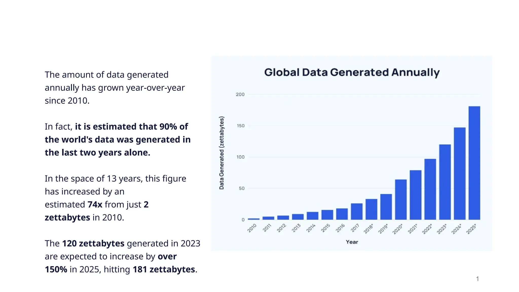 Data usage andgrowth. As size and complexity increase, the proportion of unstructured data types also increases