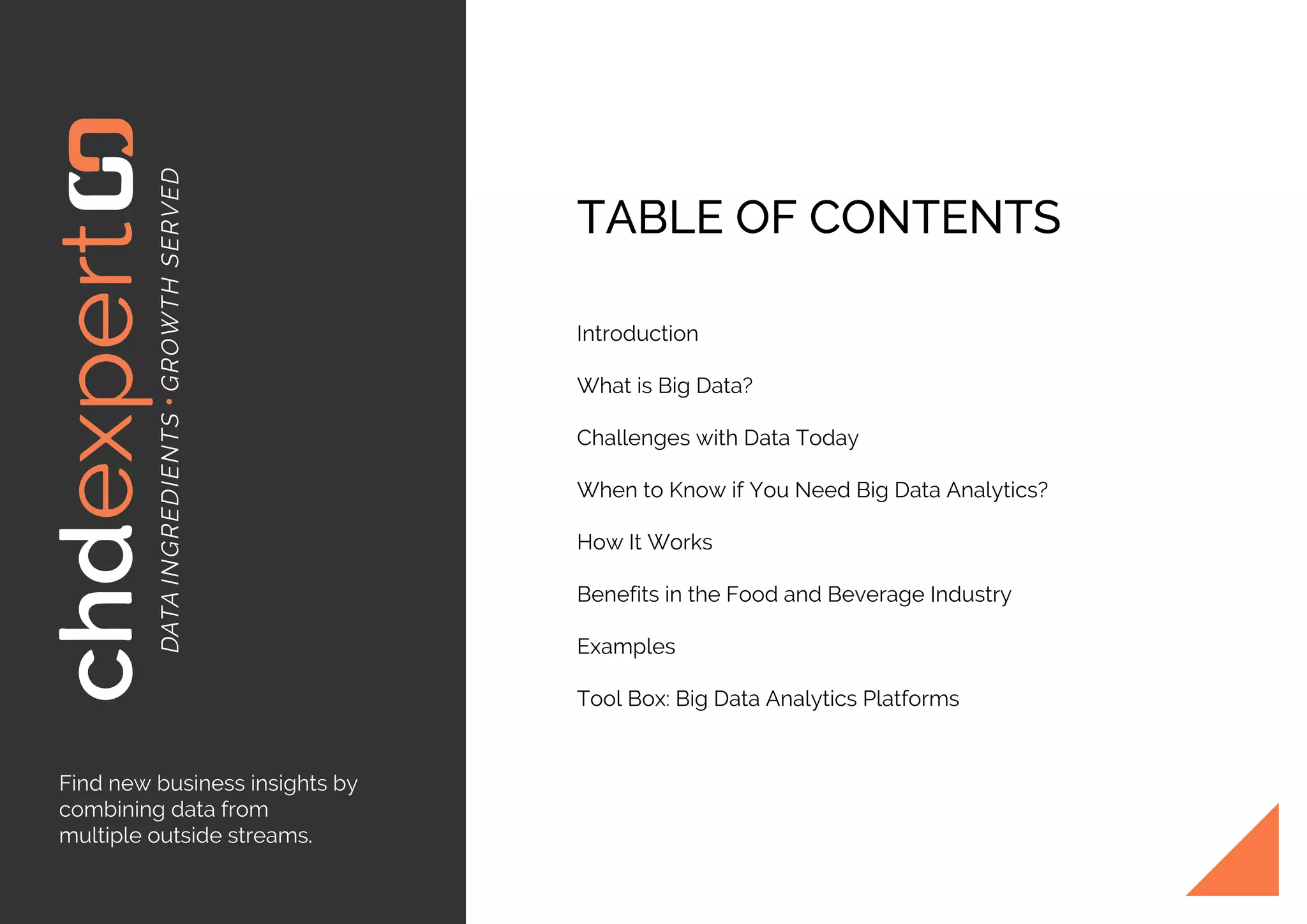Food and beverage manufacturers use big data analytics to optimize processes, improve efficiency, increase quality, and ship products on schedule. By analyzing real-time sensor data from manufacturing equipment, manufacturers can identify patterns and relationships to optimize factors like yields. Manufacturers also use big data analytics to analyze supplier and logistics data to optimize supply chains and logistics. The key takeaway is that by quantifying risks using big data tools, food and beverage companies can make more intelligent business decisions.