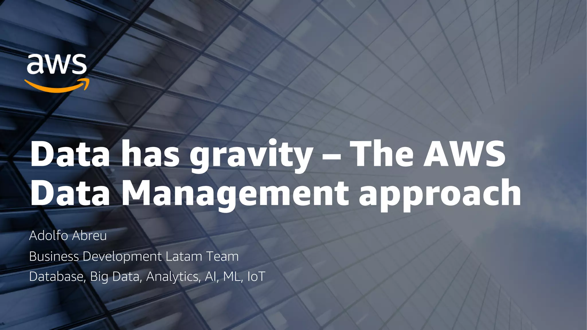 The document discusses Amazon Web Services' (AWS) approach to data management. It highlights AWS's scale, speed, and innovation as well as its customer obsession. It outlines AWS's portfolio of data and analytics services including storage, databases, data lakes, data warehouses, machine learning services, and data movement. It provides examples of how customers can build data lakes, enable self-service analytics, and simplify security management using AWS services.