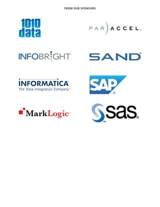 This document summarizes a report on big data analytics and the use of analytical platforms. It describes how companies have been dealing with large volumes of data for decades but that data volumes are growing exponentially due to new types of structured, semi-structured, and unstructured data from sources like the web, social media, sensors and machine data. New analytical platforms and technologies are needed to efficiently store, manage and analyze this diverse new "big data". The report is based on a survey of 302 BI professionals and interviews with industry experts regarding their use of analytical platforms for big data analytics.
