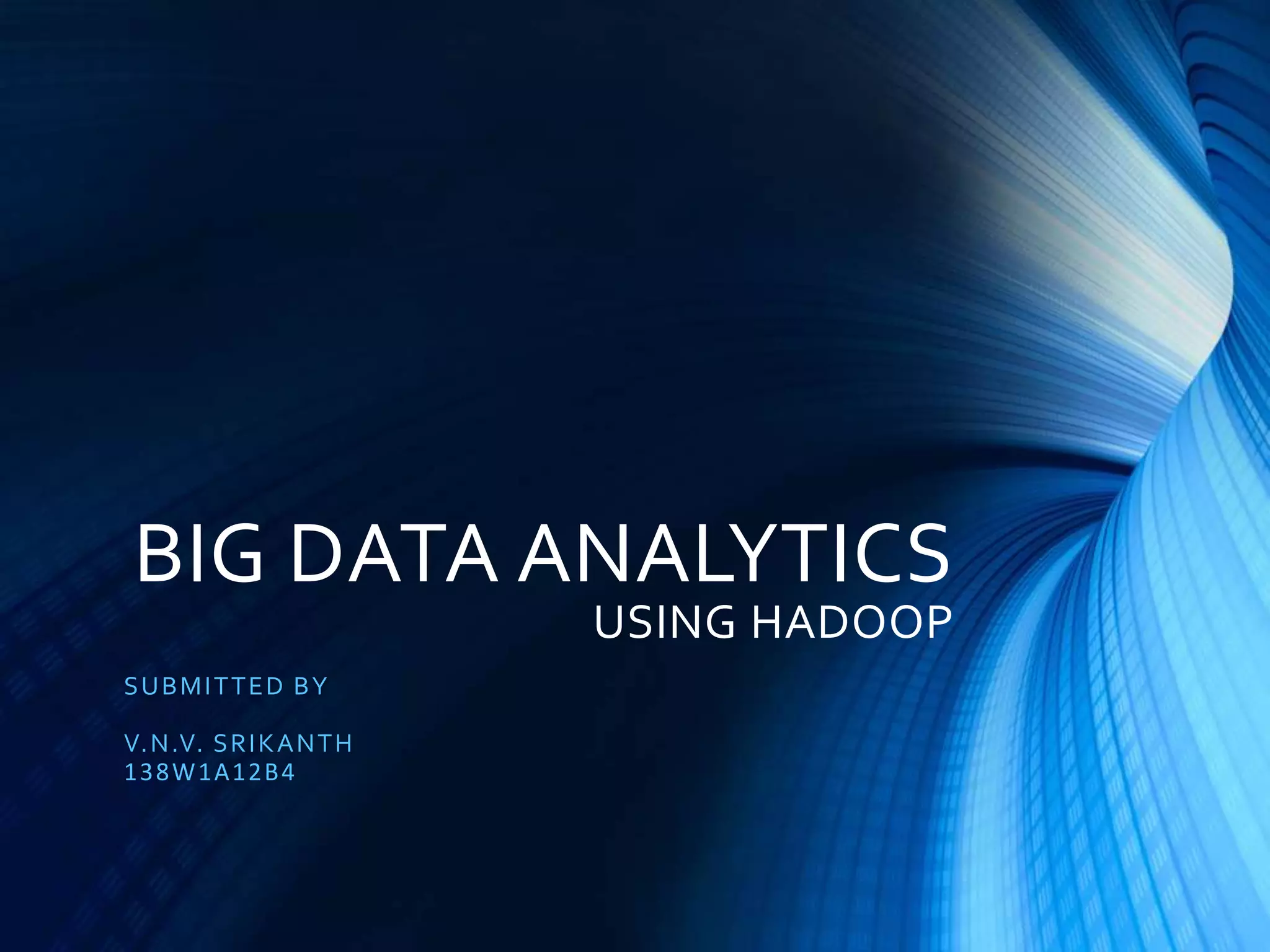 The document discusses big data analytics using Hadoop, highlighting its capability to analyze vast datasets for uncovering business insights and enhancing operational efficiency. It outlines challenges in data processing, such as data silos and the handling of unstructured data, and emphasizes the advantages of adopting technologies like MapReduce and HDFS. Additionally, it reviews the history of Hadoop's development and applications in various sectors, concluding that effective big data analytics can significantly improve business decisions and outcomes.