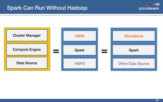 This document discusses big data analytics using Spark. It provides an overview of the history and growth of data from the 1980s to present. It then demonstrates how to perform word count analytics on text data using both traditional MapReduce techniques in Hadoop as well as using Spark. The code examples show how to tokenize text, count word frequencies, and output results.