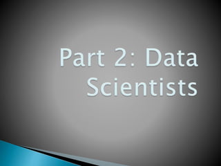 The document provides a comprehensive overview of big data, its implications for various sectors, and the challenges associated with processing and analyzing it, including the need for advanced statistical methods and computing resources. It outlines the role of data science, highlighting the blend of statistical, machine learning, and domain knowledge required to derive insights from big data. A growing demand for analytics talent and the projected economic impact of data science on revenue are also discussed, emphasizing the emergence of data science hubs outside traditional tech centers.