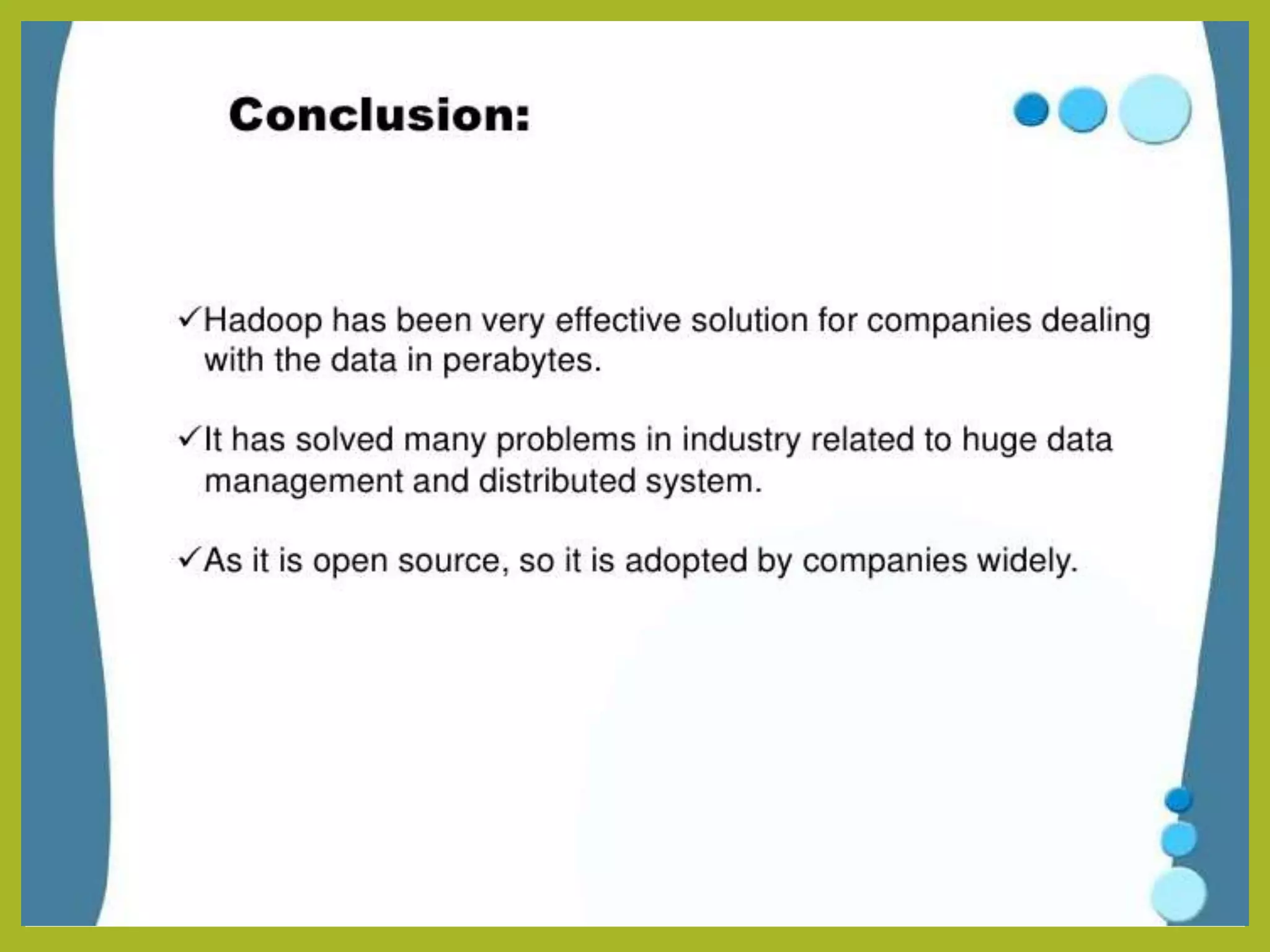 Big data and Hadoop are frameworks for processing and storing large datasets. Hadoop uses HDFS for distributed storage and MapReduce for distributed processing. HDFS stores large files across multiple machines for redundancy and parallel access. MapReduce divides jobs into map and reduce tasks that run in parallel across a cluster. Hadoop provides scalable and fault-tolerant solutions to problems like processing terabytes of data from jet engines or scaling to Google's data processing needs.