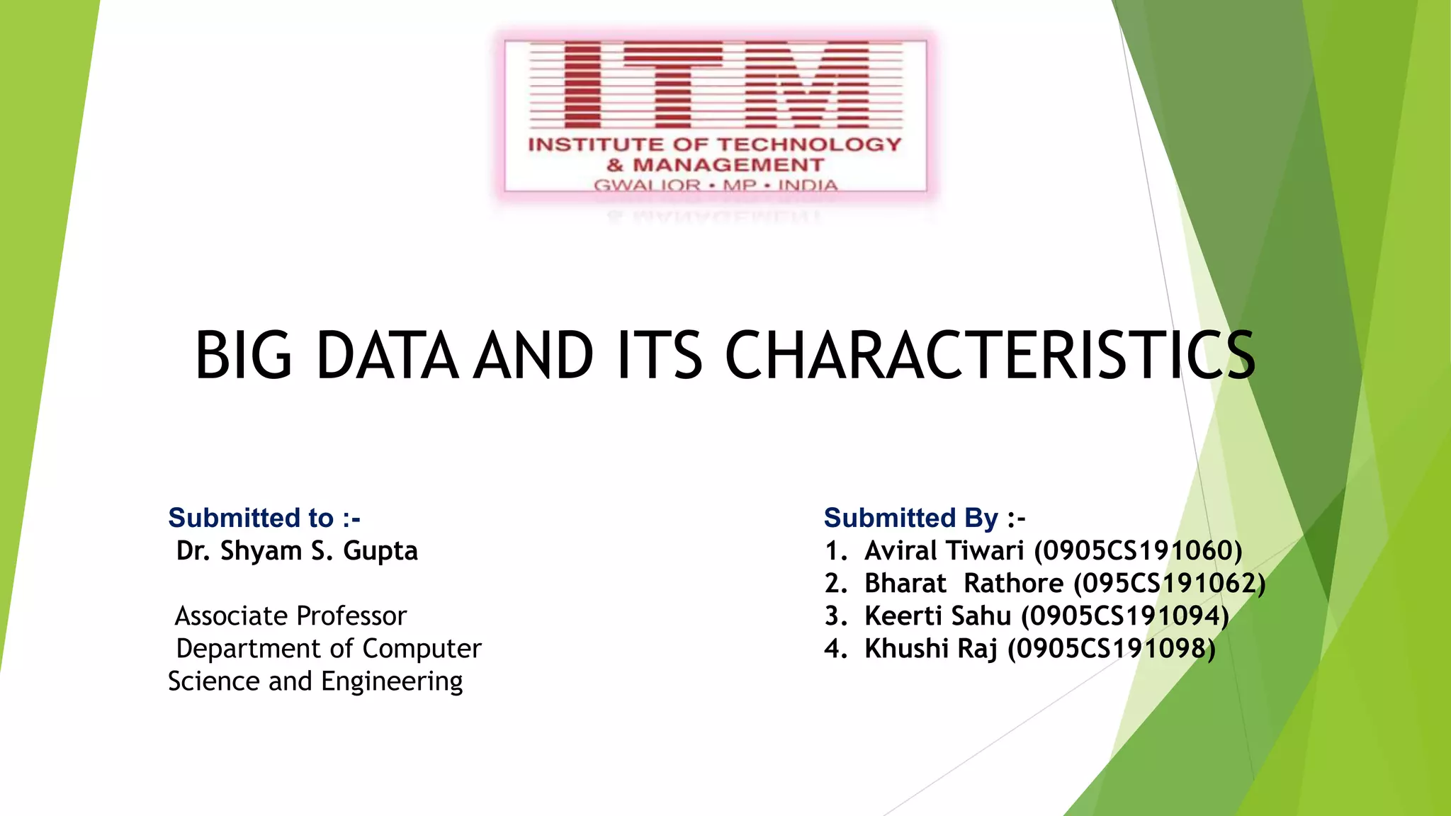 Big data is a collection of data that is huge in volume and growing exponentially over time. It is data that cannot be stored or processed efficiently using traditional data management tools. Some examples of big data applications include social media, banking, communications, education, manufacturing, government, and retail. Big data has several key characteristics and organizations use it to make real-time data driven decisions to improve outcomes. However, it also presents challenges related to talent, incompatible tools, and correlation errors.