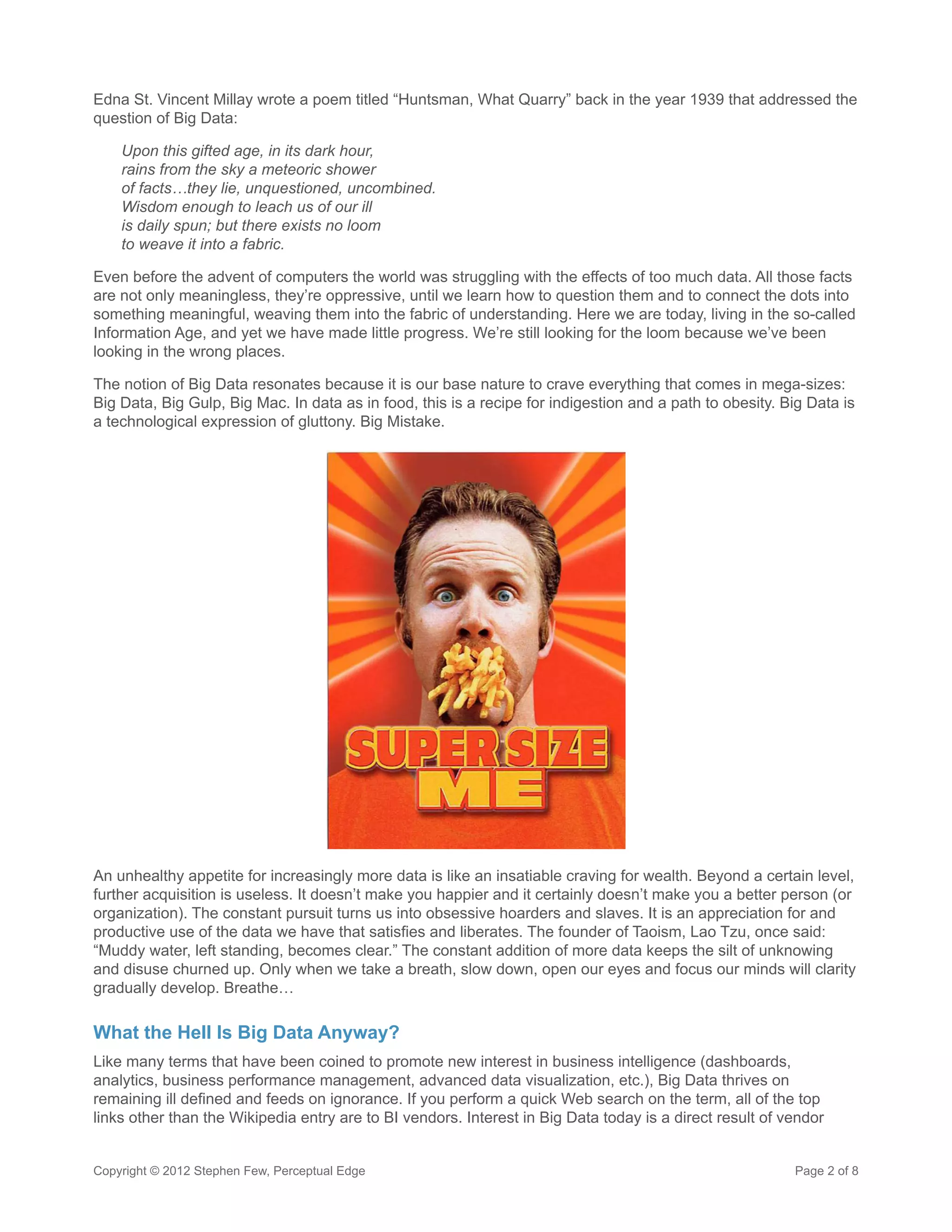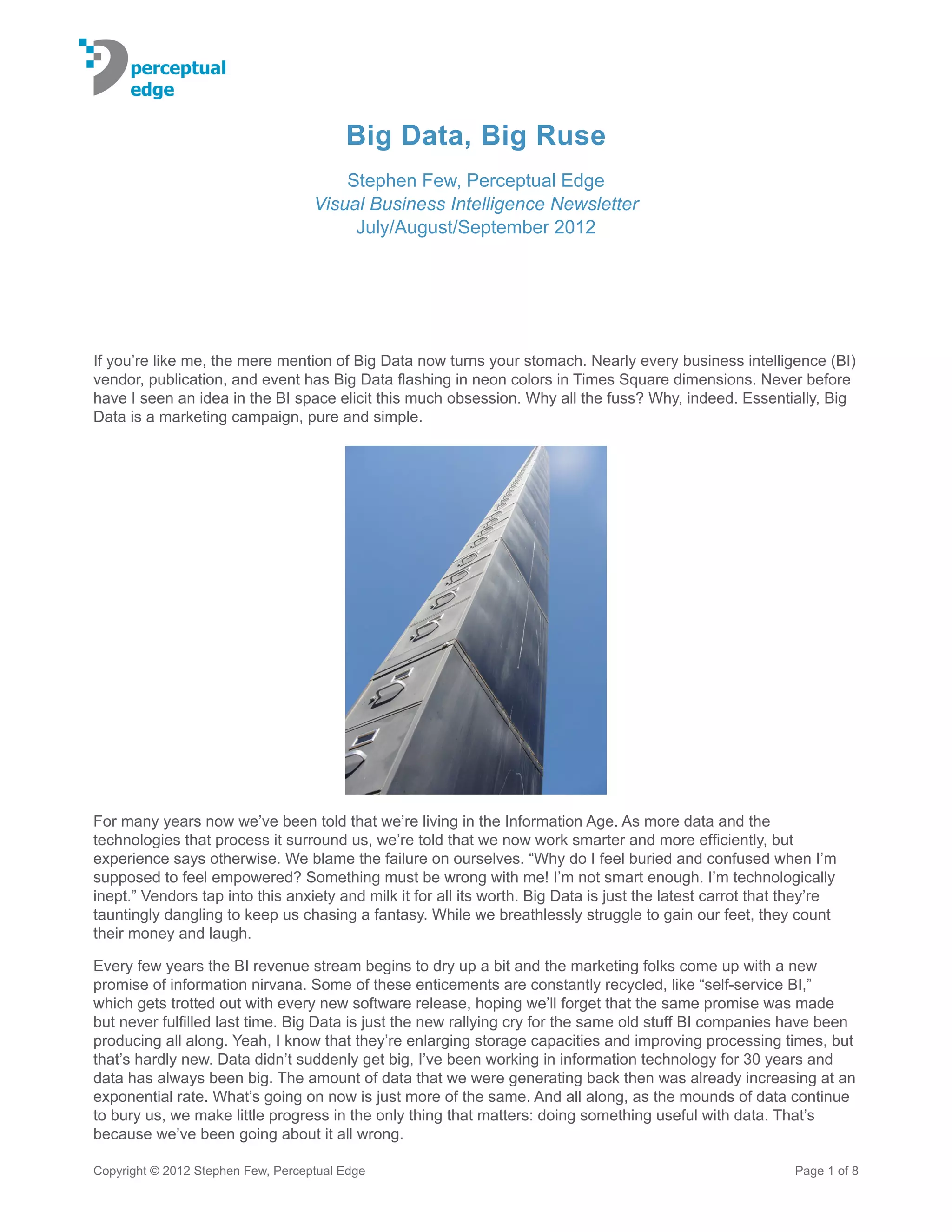 2) While vendors tout new sources of data and increased volumes, the author claims this is just "more of the same" and does not require fundamentally new approaches. Greater data does not necessarily lead to better insights or decisions.