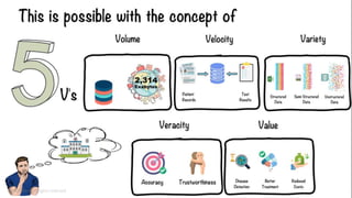 The document discusses the significance of big data in the IT industry, highlighting its volume, velocity, and variety, as well as its ability to solve problems more effectively than traditional computing. It outlines various tools and techniques for analyzing and storing big data, along with applications across different sectors like banking, healthcare, and retail. The piece concludes by emphasizing big data as a competitive advantage for businesses, along with the challenges that must be addressed to harness its potential.