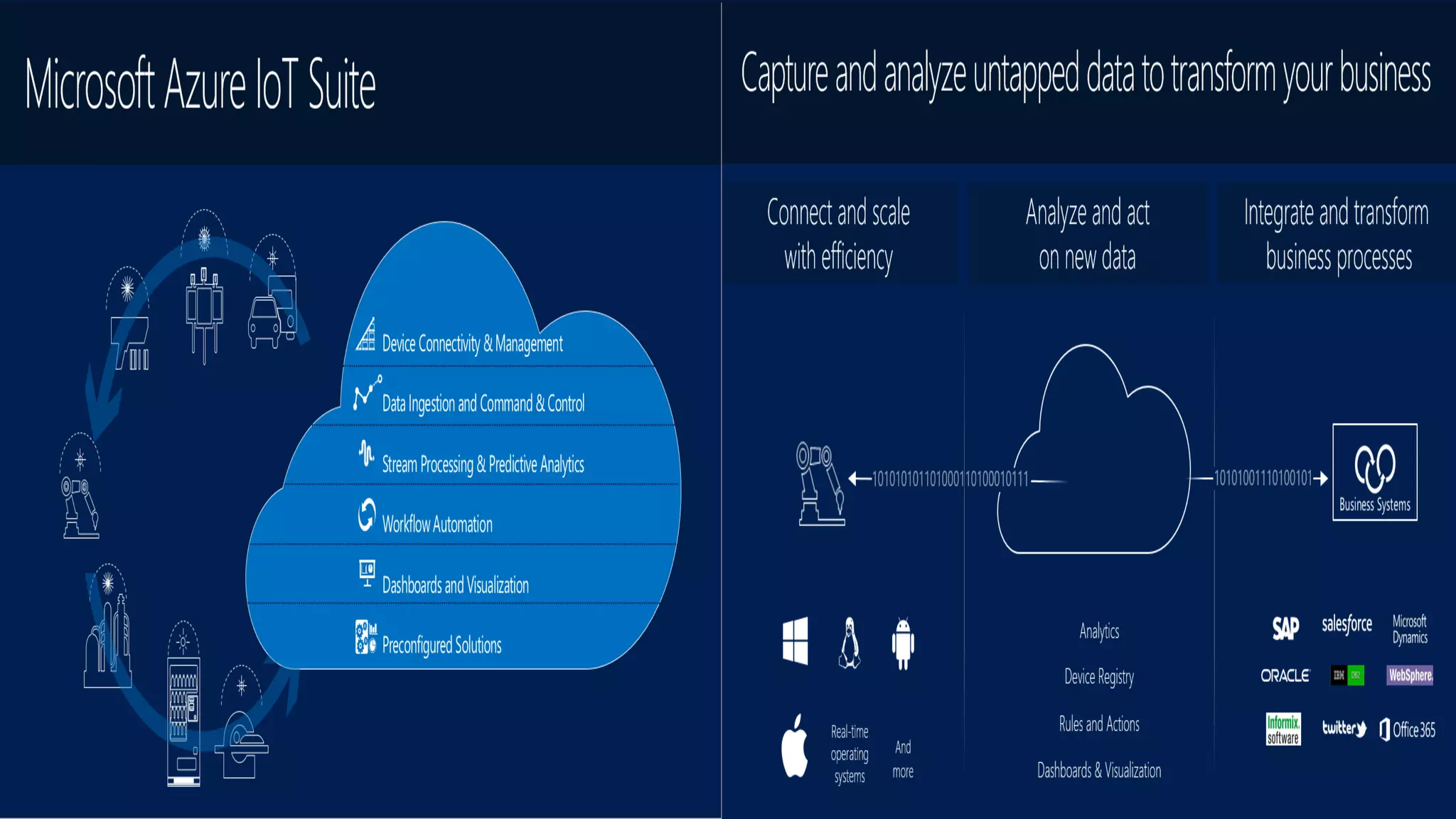 The document discusses the Internet of Things (IoT) and its potential to enhance connectivity, customer service, and predictive maintenance through Microsoft's Azure IoT Suite. It emphasizes the complexities of IoT projects and highlights preconfigured solutions that enable organizations to quickly implement and tailor IoT applications. The Azure IoT Suite provides tools for data integration, analysis, and visualization to drive business insights and transformation.