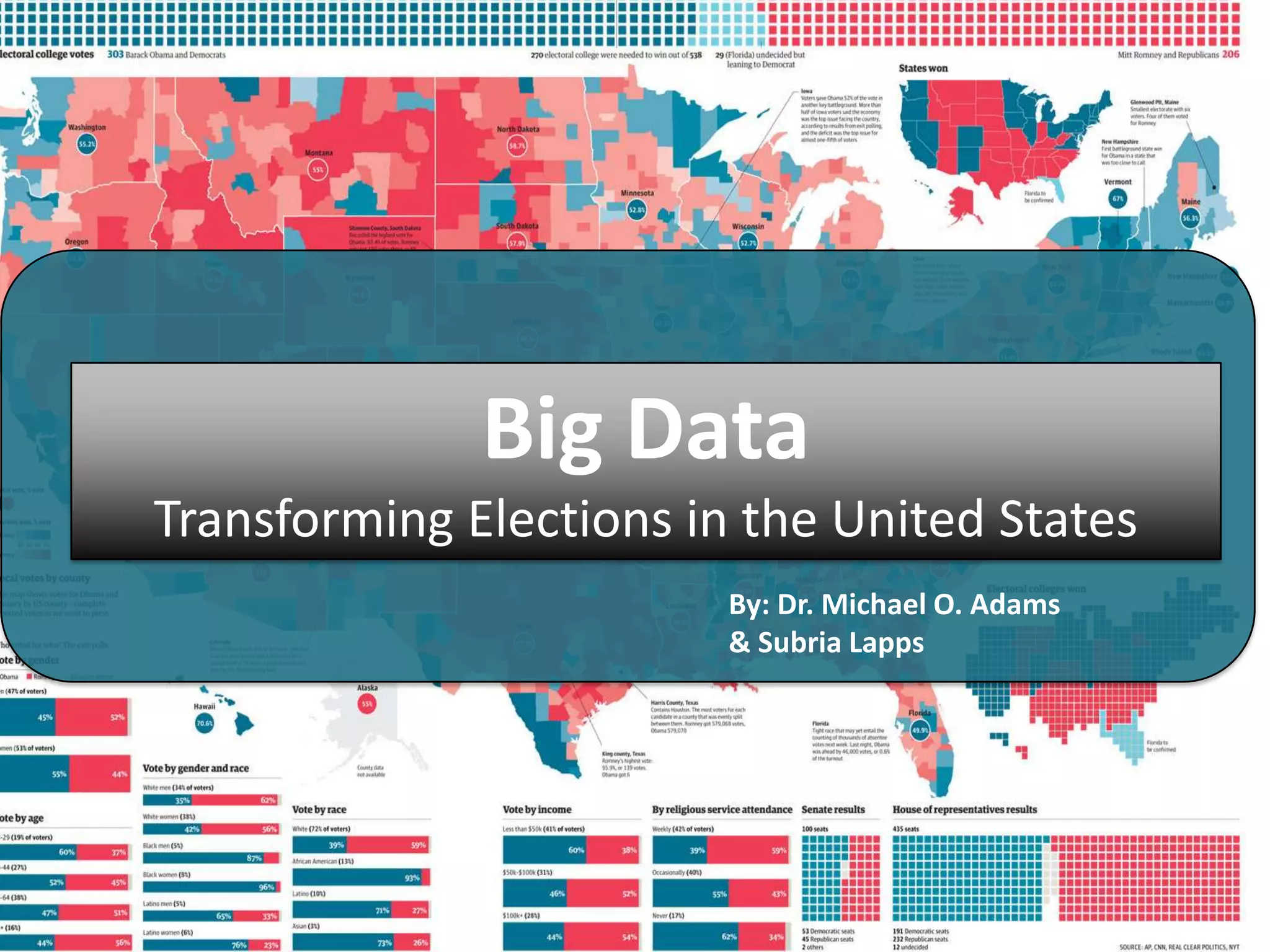 The document discusses the transformative impact of big data on elections in the U.S., particularly focusing on African-American candidates and their engagement with evolving media landscapes. It highlights the decline of traditional media and the rise of social media, while emphasizing the need for African-American candidates to adapt to demographic changes and utilize big data for personalized voter outreach. Challenges include losing connections with younger voters and the ethical concerns surrounding data privacy.