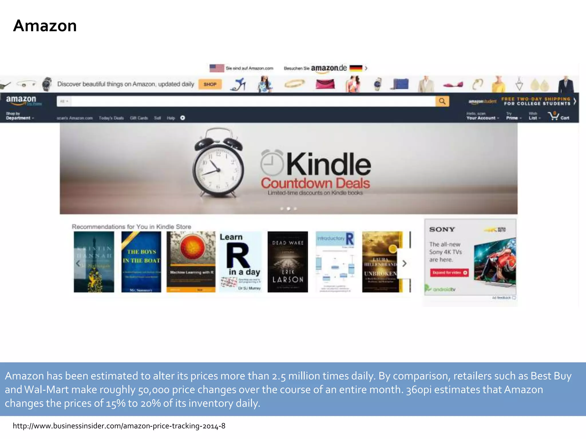 1) Amazon alters its prices over 2.5 million times daily based on data, changing 15-20% of inventory prices daily.