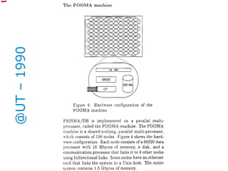 The document discusses and compares MapReduce and relational database management systems (RDBMS) for large-scale data processing. It describes several hybrid approaches that attempt to combine the scalability of MapReduce with the query optimization and efficiency of parallel RDBMS. HadoopDB is highlighted as a system that uses Hadoop for communication and data distribution across nodes running PostgreSQL for query execution. Performance evaluations show hybrid systems can outperform pure MapReduce but may still lag specialized parallel databases.