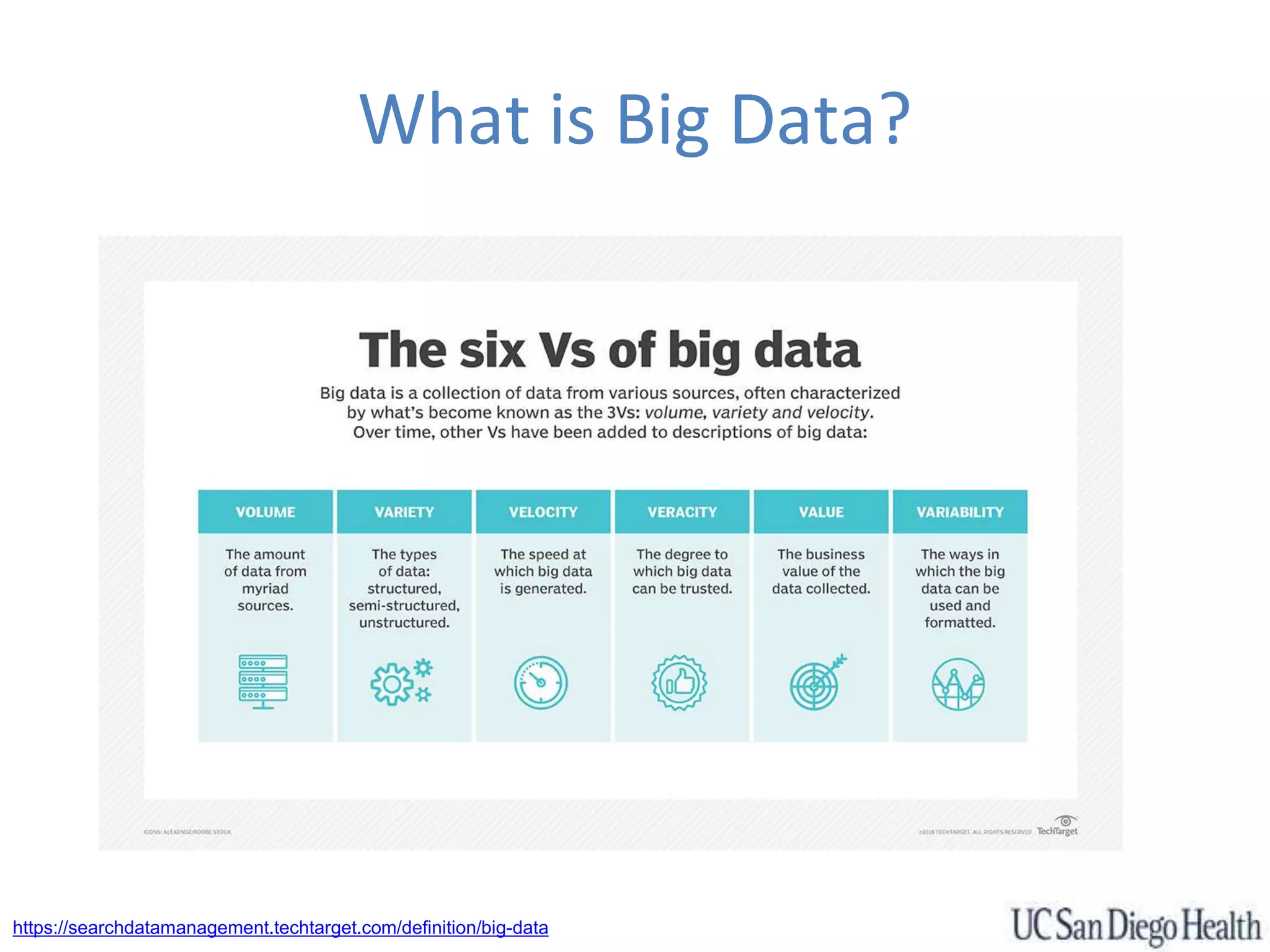 The document discusses the role of big data in clinical research, emphasizing its significance in predicting trial feasibility, improving participant matching, and enhancing drug development through real-world evidence (RWE). It highlights innovations such as Google Bigtable and the application of artificial intelligence and machine learning in healthcare, particularly in image analysis and drug design. Additionally, it outlines the data challenges in healthcare, including privacy concerns and harmonizing data from various sources.