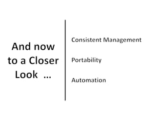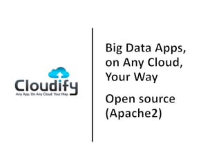 The document discusses the integration of big data with cloud services, highlighting the benefits of using big data analytics and automation for performance and cost efficiency. It emphasizes the importance of app portability, consistent management, and leveraging external data in cloud environments. A case study on a call center surveillance system is presented, showcasing the advantages of monitoring multiple data sources for advanced correlations.