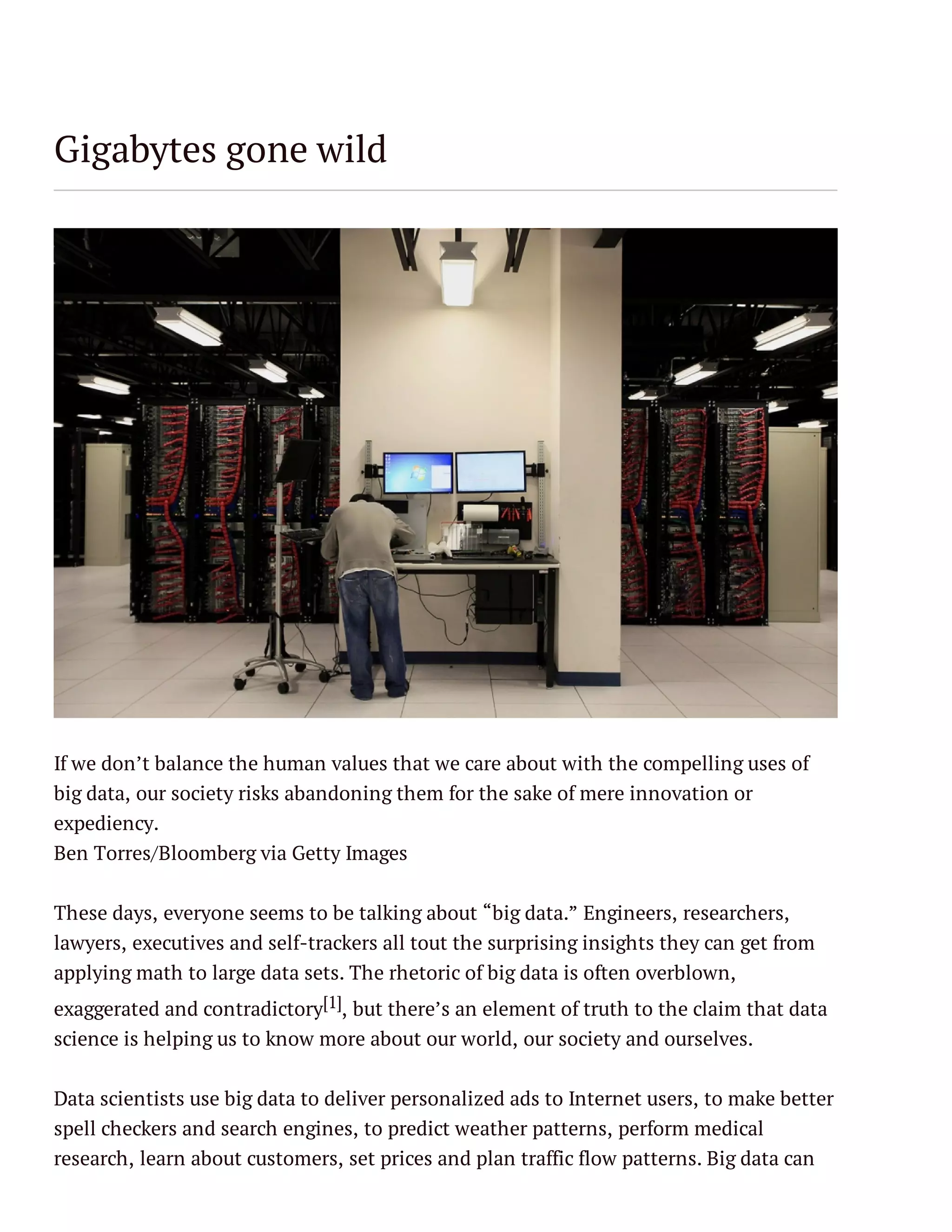 The document discusses the ethical implications of big data, emphasizing the need to balance innovation with critical human values like privacy, transparency, and identity. It advocates for a societal conversation on big data ethics to ensure that decision-making processes based on personal data do not infringe on individual rights. The authors suggest that while legal frameworks must be established, ethical considerations should be at the forefront of the data science revolution to protect societal interests.