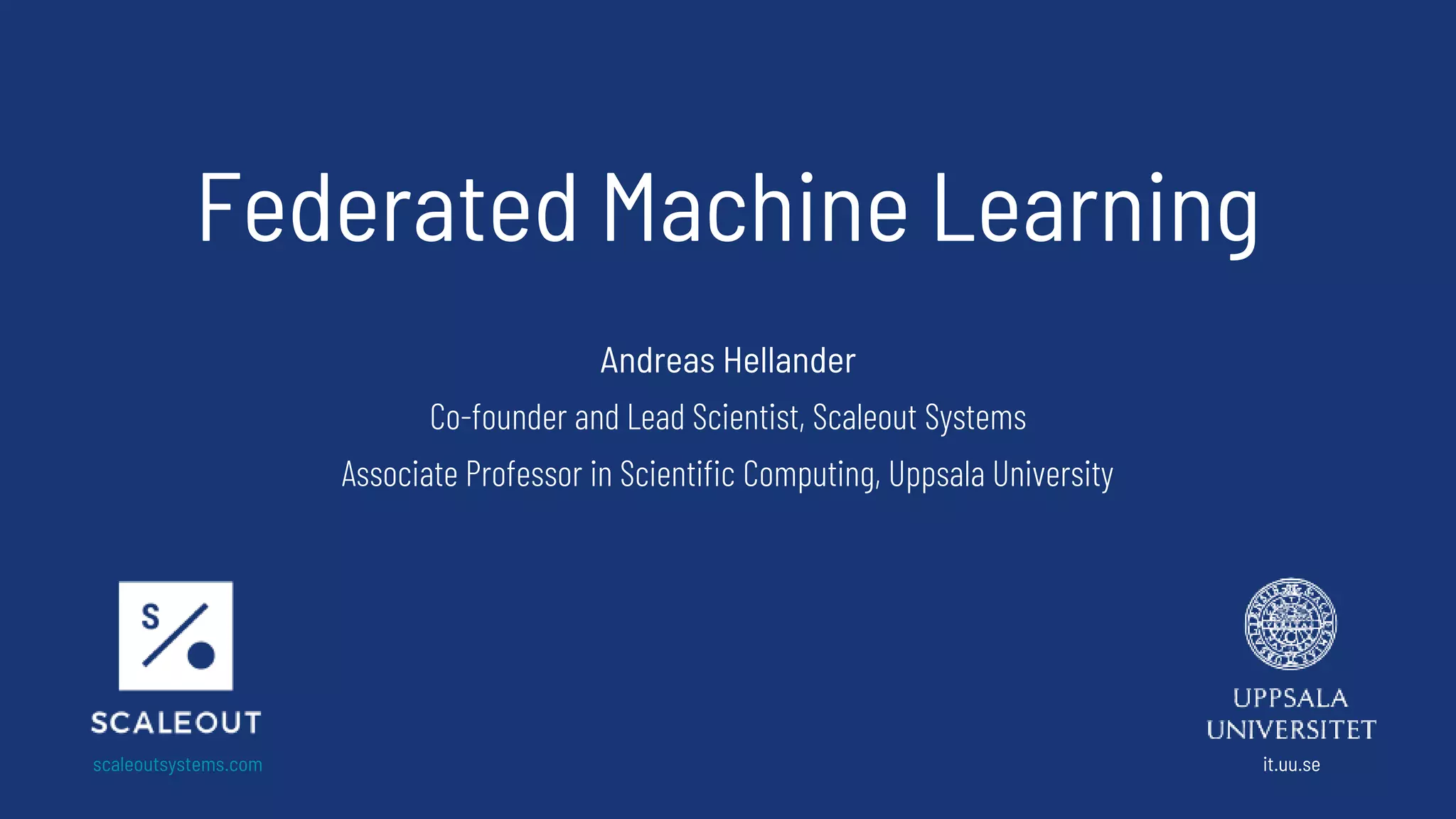 The document discusses federated machine learning (FedML) as a decentralized approach to training machine learning models while maintaining data privacy and security. It outlines issues with centralized machine learning, including data privacy regulations and practical challenges in data sharing, and emphasizes the benefits of FedML in creating collaborative models from local data without the need for data transfer. Additionally, it touches on research and development challenges in ensuring scalability, security, and robustness against adversarial threats in federated learning systems.
