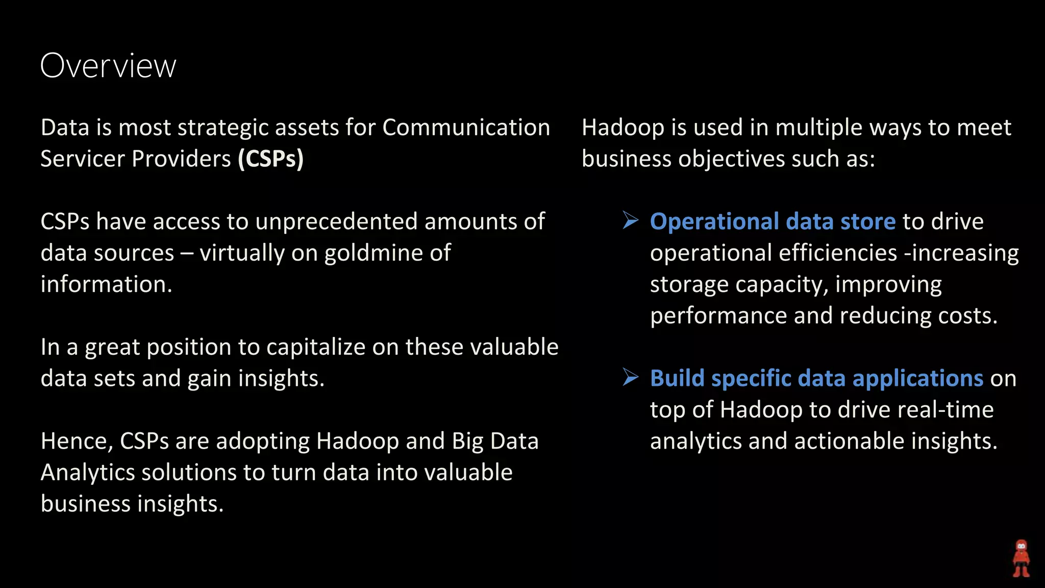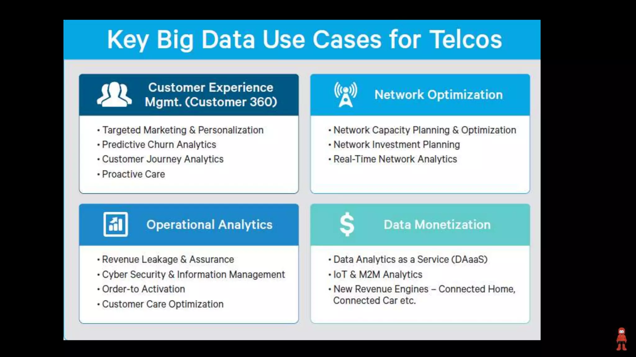 Telecommunication service providers (CSPs) leverage Hadoop and big data analytics to extract insights from vast amounts of data, enhancing operational efficiencies, customer experiences, and network management. Key applications include customer journey analytics for targeted marketing, proactive issue resolution, and network capacity planning. CSPs also monetize data by offering analytics-as-a-service to various industries and play a crucial role in the Internet of Things ecosystem.