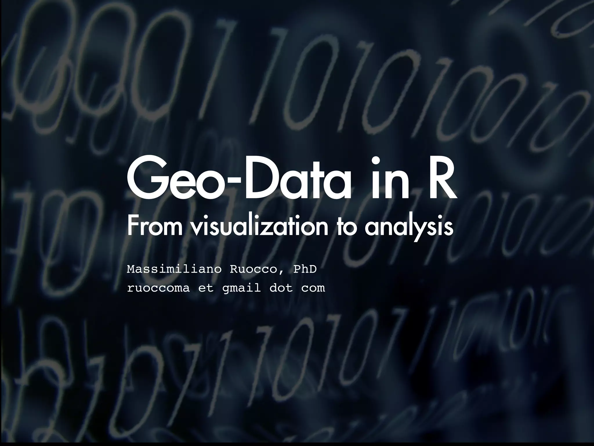 The document outlines an introduction to analyzing and visualizing geo-data in R. It discusses exploring the structure of spatially distributed point data through point process statistics like the Complete Spatial Randomness test and Ripley's K-function. It also covers visualizing maps and point patterns with packages like maps, ggmap, rworldmap, and ggplot2. The document provides examples of mapping different regions, geocoding location data, and plotting point patterns on maps in R.