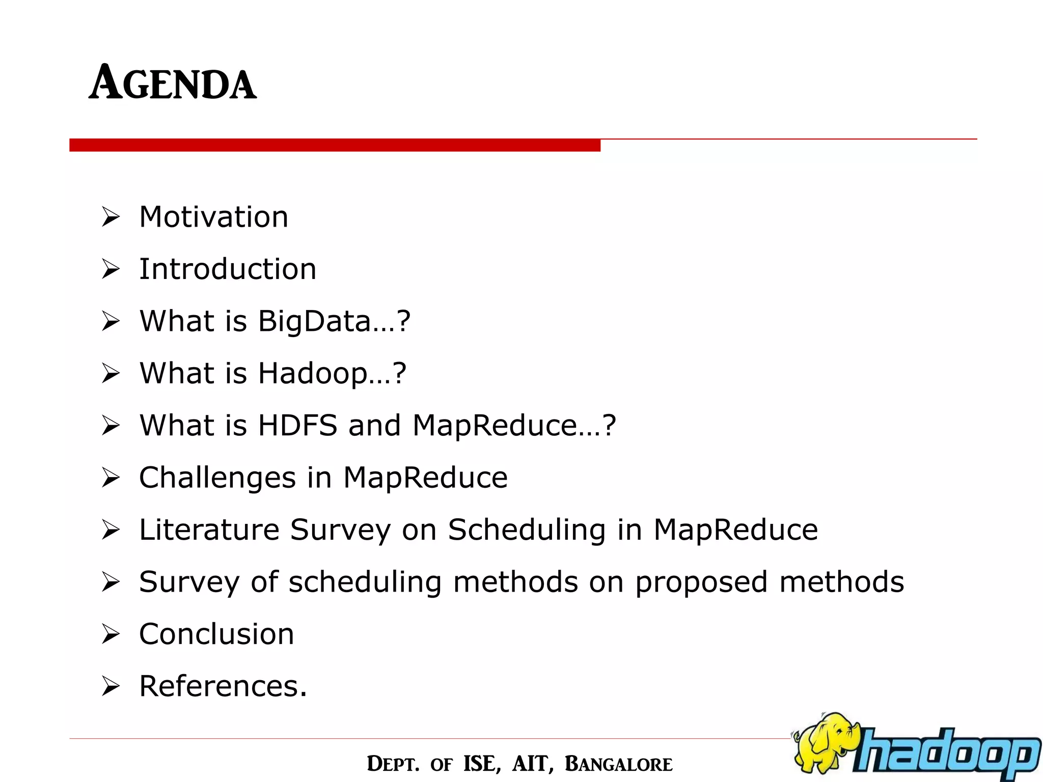 This seminar presentation provides an overview of scheduling methods in the Hadoop MapReduce framework. It begins with motivations for using distributed computing for big data and introduces Hadoop and MapReduce. The presentation then surveys several proposed scheduling methods, including static methods like FIFO and adaptive methods like the Fair Scheduler. It summarizes five research papers on scheduling, discussing proposed approaches like optimizing job completion time and learning node capabilities for heterogeneous clusters. The presentation concludes that scheduling algorithms should improve data locality and use prediction to efficiently schedule jobs on heterogeneous Hadoop clusters.