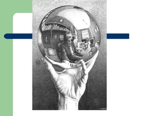 The document discusses MC Escher, a famous graphic artist known for his mathematically inspired artwork. It also mentions Rodin, a French sculptor renowned for his sculptures of hands, including his iconic "Hand of God" work. Finally, it contrasts contorted and relaxed hand poses, noting that contorted poses involve twisted fingers and stretched digits while relaxed poses have straighter digits and smoother lines.