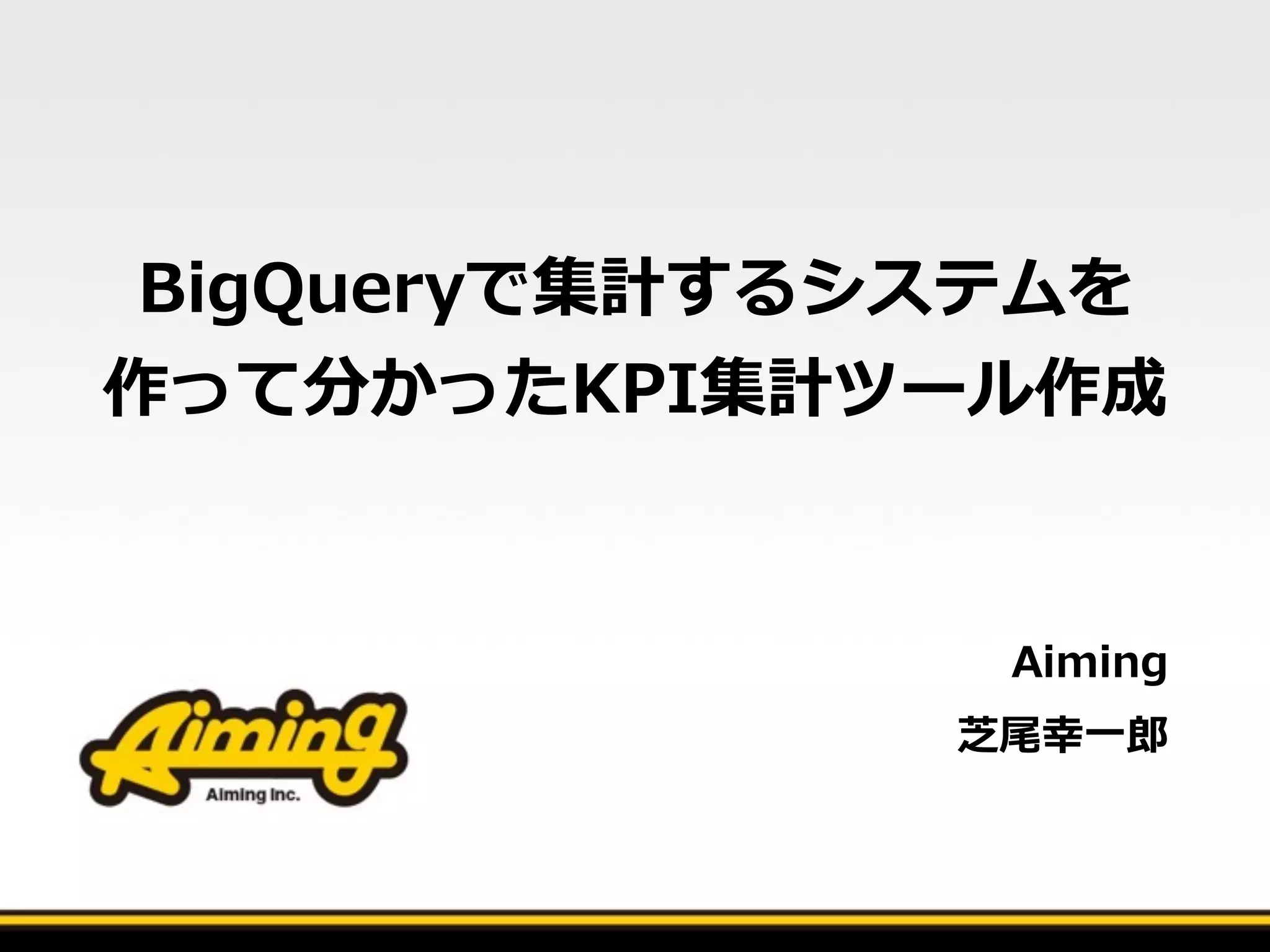 株式会社 Aiming 主催の開発勉強会 第8回の発表資料になります。Aiming社でのデータ集計環境構築の話になります。 http://aiming.connpass.com/event/25004/
