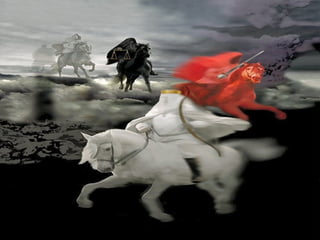 De zeven zegelsDe 1 e zegel schijnvrede De 2 e zegel oorlog De 3 e zegel hongersnood De 4 e zegel pest De 5 e zegel vervolging De 6 e zegel aardbevingen
