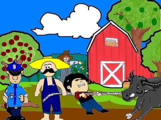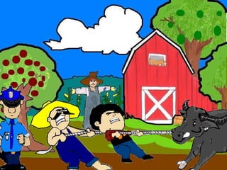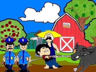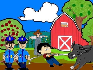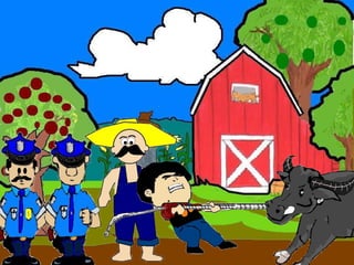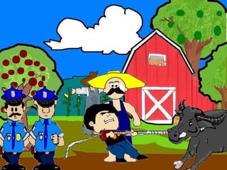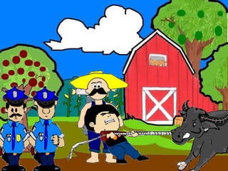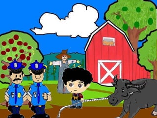 The document discusses a conversation between two individuals about a water buffalo. One person helped their mother with the water buffalo and the other comments that it is a rare breed worth a lot. They inquire if it belongs to the person, who replies it belongs to their friend. The second person then mentions someone known for stealing water buffalos in the area. The first person replies they only helped their friend and suggests going to the police station to explain.