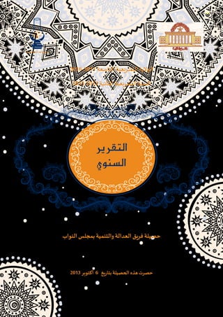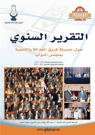 ممثلي تقرير النواب مجلس بمكتب الثانية التشريعية السنة برسم 2013/ 2012 النواب مجلس لرئيس لاألو النائب يتيم محمد النواب مجلس محاسب حووبر اللطيف عبد النواب مجلس أمينة املصلي جميلة النواب مجلس أمين حيكر الصمد عبد وقد ،الثانية التشريعية السنة خالل النواب مجلس مكتب بها قام التي األشغال أهم يلخص التقرير هذا اترالقرا اتخاذ في أساسيا مكوننا نيشكلو بصفتهم املكتب هذا أعضاء والتنمية العدالة فريق نواب أعده مفيدة غاية ولكل املجلس مكتب داخل ممثليه مجهود لتقييم الفريق يدي بين لعرضه وذلك النواب بمجلس