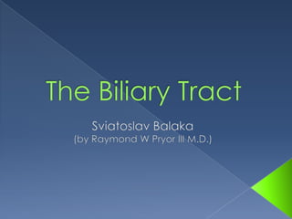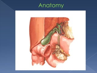 This document provides a historical overview of knowledge and surgical advances related to the gallbladder and biliary tract. It discusses key figures from ancient Greece to the late 19th century who contributed anatomical descriptions and early surgical procedures. Major milestones included the first accounts of gallstones in 1420, first gallstone operation in 1687, and first successful gallstone removal in 1733. The modern era of gallbladder surgery began in 1882 with the first open cholecystectomy.
