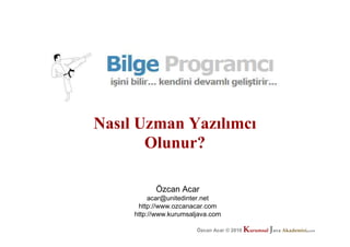 24.3.2010 tarihinde Elazig Fırat Üniversitesi'nde yapmış olduğum Bilge Programcı - Nasıl uzman yazılımcı olunur? başlıklı seminerimin içeriği. Detaylar için bakınız: http://www.bilgeprogramci.com